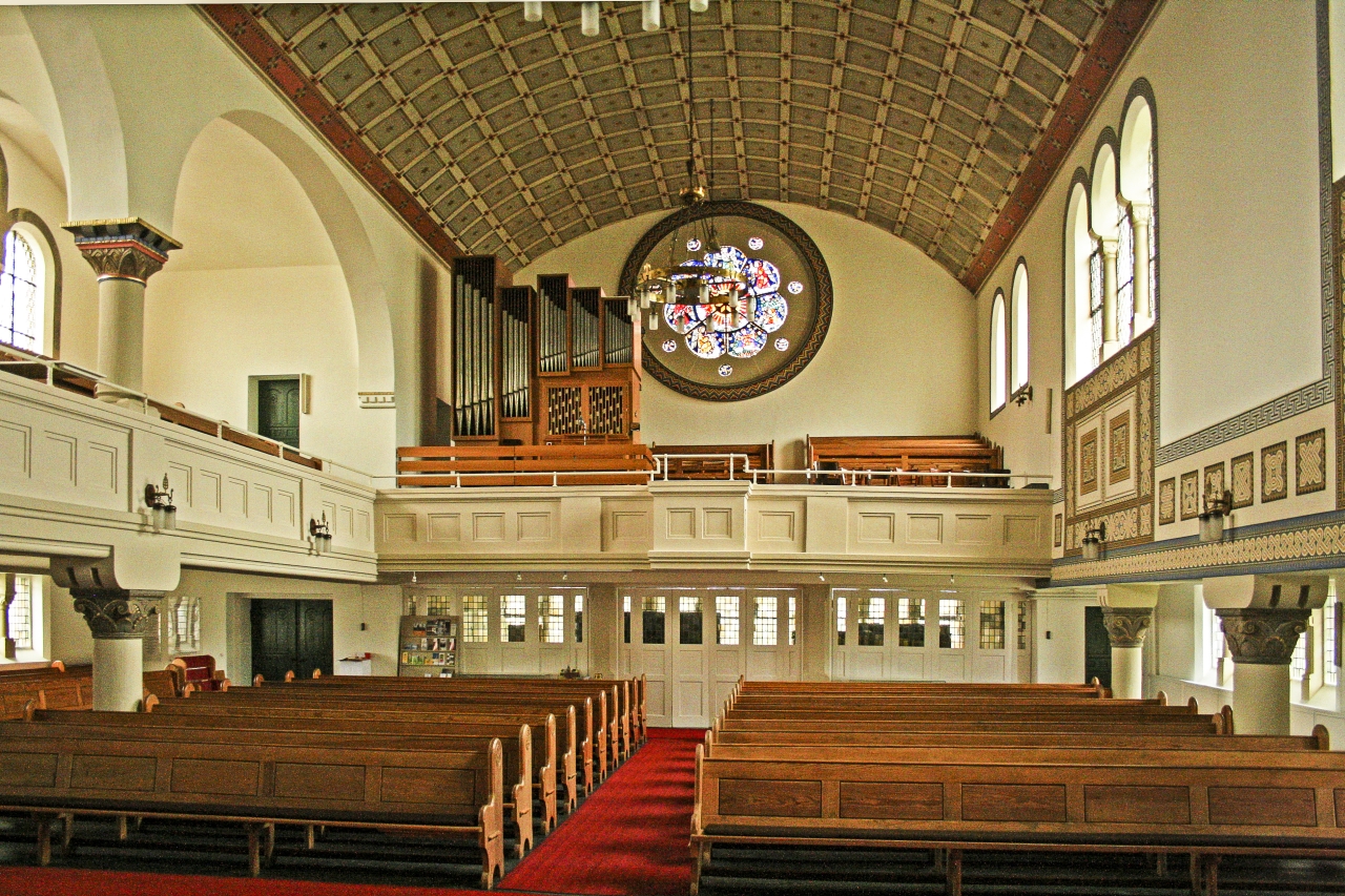 Nach sechsjähriger Renovierung strahlt der Innenraum der Christuskirche zum 100-jährigen Jubiläum im Jahre 2010.