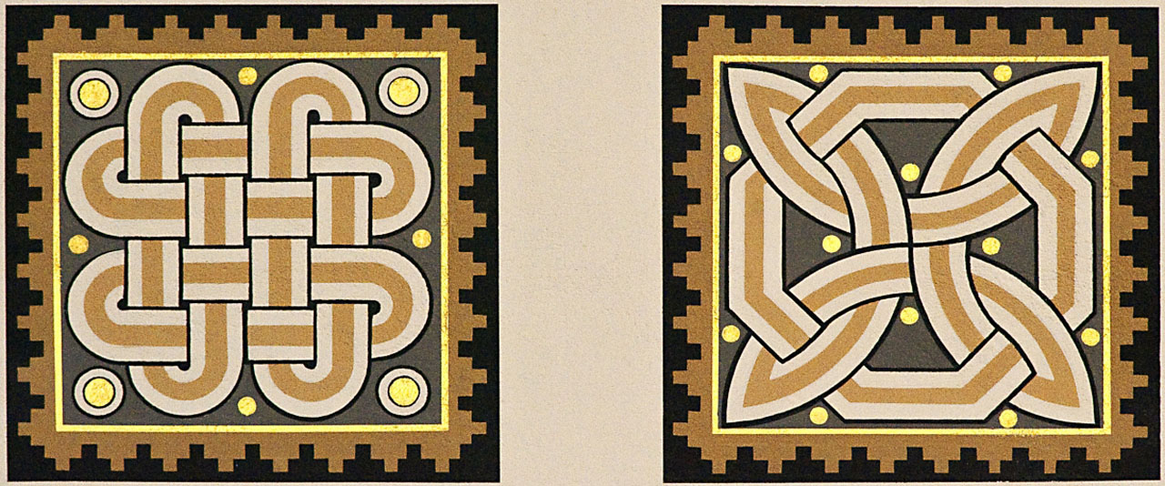 Nun lassen sich wieder gut die unterschiedlichen Ornamente auf den Seitenteilen der Bänke erkennen.