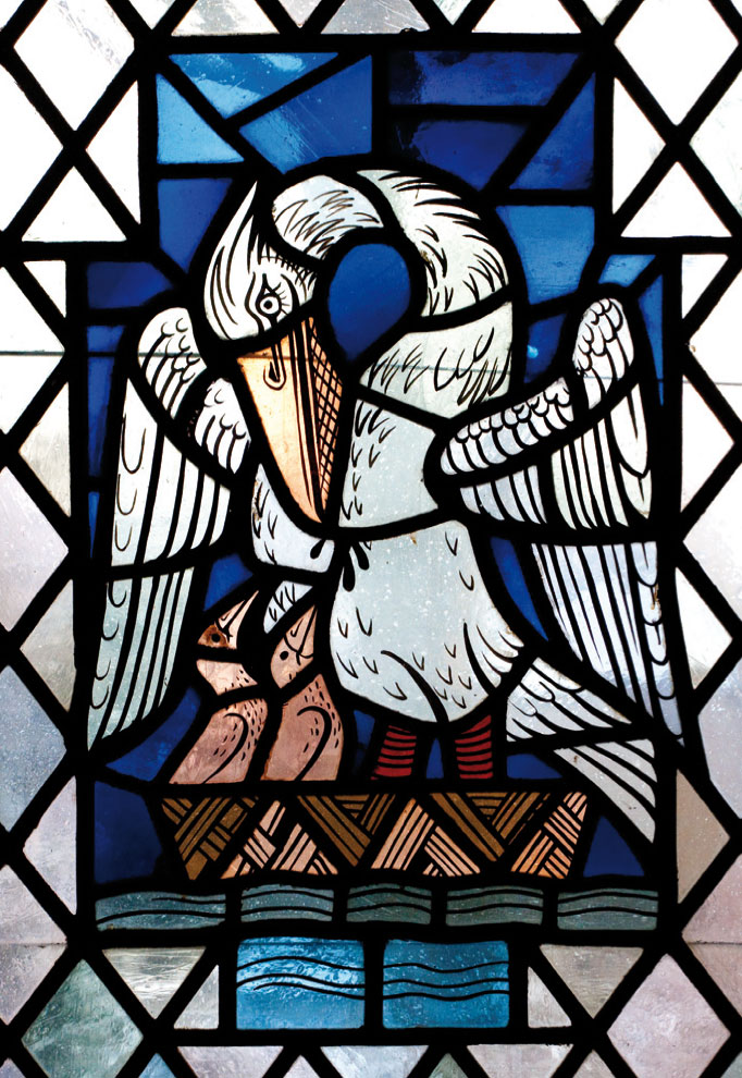 Der Pelikan ist ein frühchristliches Sinnbild für Jesus. Man meinte, der Pelikan ernähre seine Jungen mit seinem Blut.
