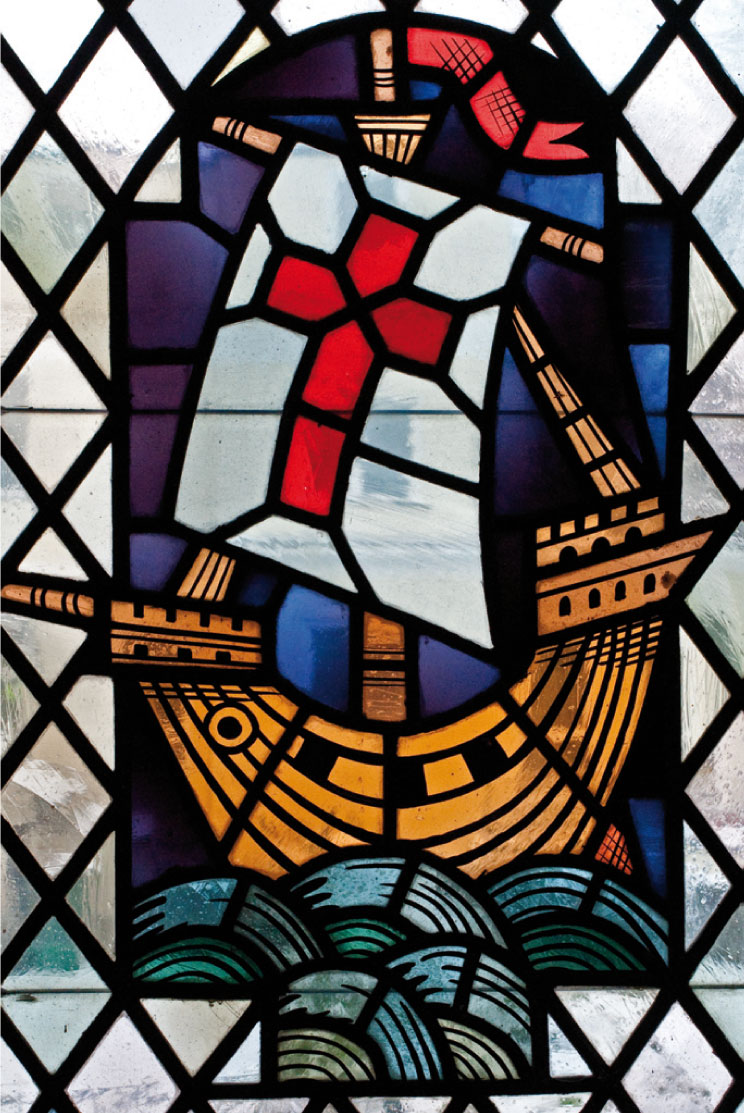 Dieses Fenster erinnert an die Geschichte von der Sturmstillung (Mk. 4, 35-41)