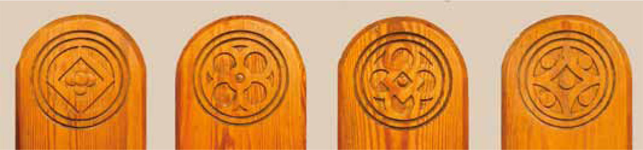 Ornamente auf den Kirchenbänken