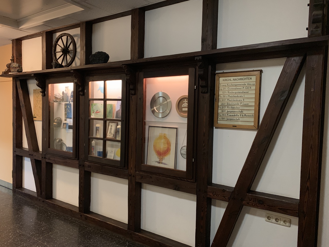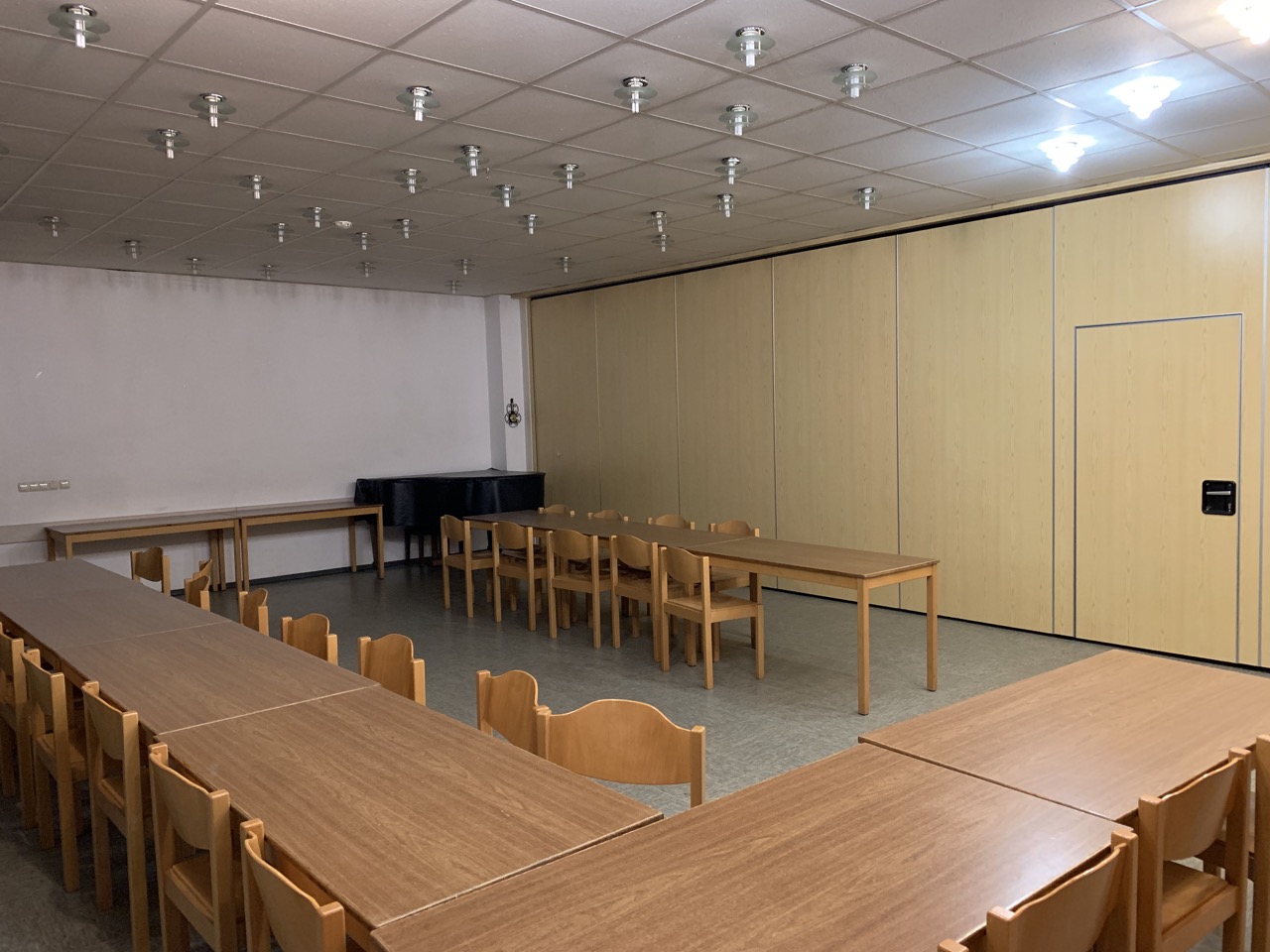 Auf der unteren Etage befinden sich mehrere kleine Gruppenräume, das Gemeindebüro sowie die Haustechnik.