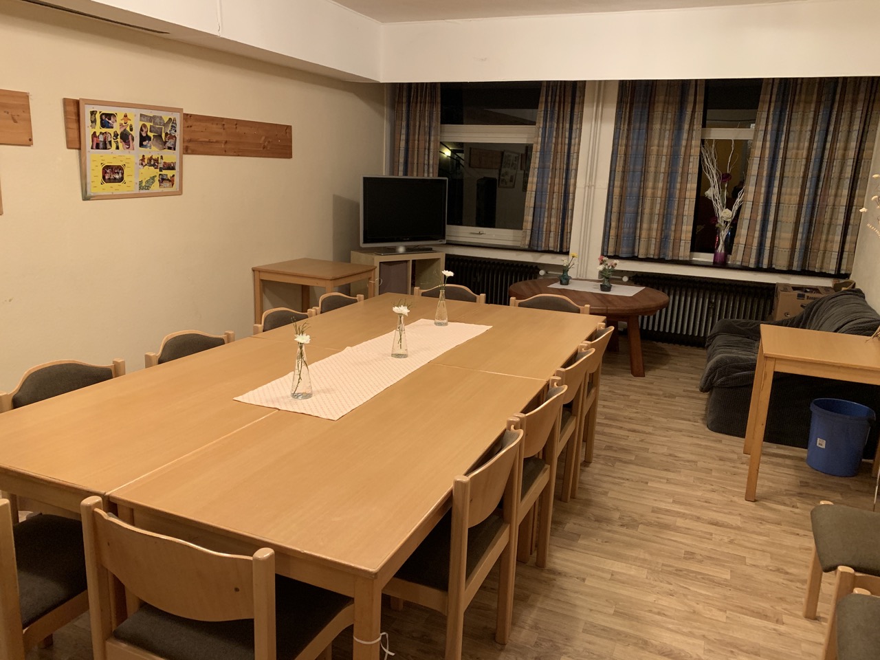 Es bietet auf 2 Etagen mit vielen Räumen unterschiedlicher Größe ausreichend Platz für die Gruppen und Kreise der Gemeinde.